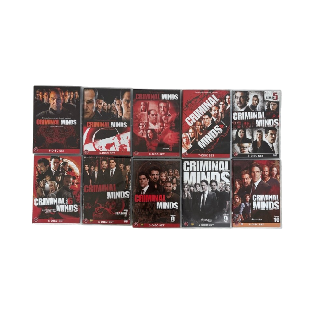 Myynnissä Criminal Minds -sarjan kaudet 1–10 DVD:einä! Kaikki levyt ehjiä ja toimivia. Suomenkieliset tekstitykset. Täydellinen paketti rikossarjojen faneille tai keräilijöille. Katsojille, jotka rakastavat intensiivisiä juonikuvioita, älykkäitä hahmoja ja psykologista jännitystä – tästä ei rikosdraama parane!