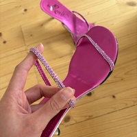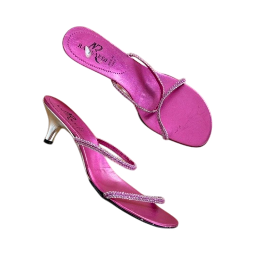 Söötit vintage korkkarit 💗 Merkki Rapisardi, koko 40 ja omaan 39,5 jalkaan sopivat. Remmeissä sööttejä kimalteita. Made in Italy. Sisämitta n 26 #kittenheel #sandal #vintage #bling