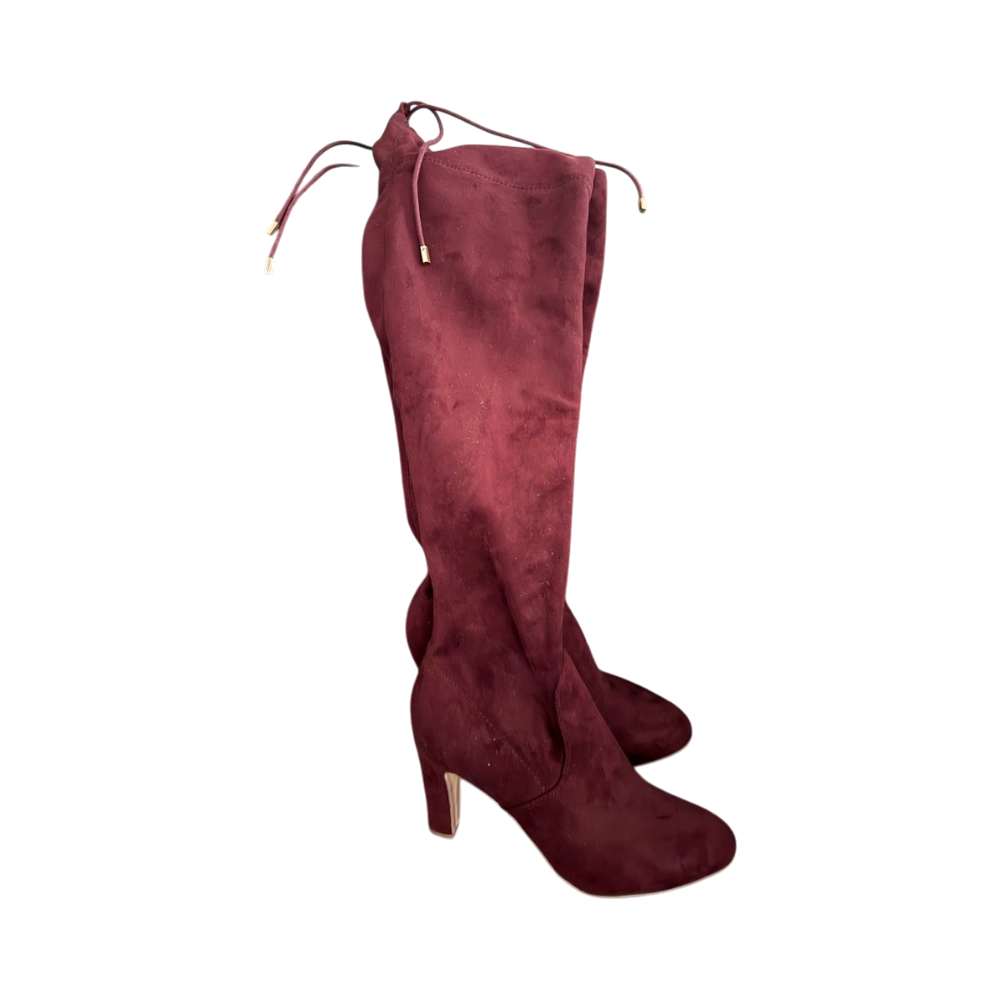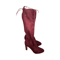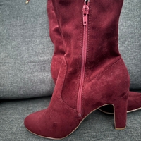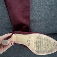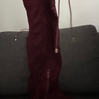 Yli polven korkokorkoiset saappaat, vetoketju ja nauhat takana. Koko 38, vastaa kokoa.