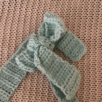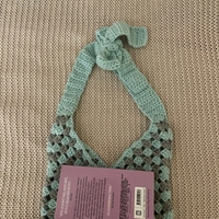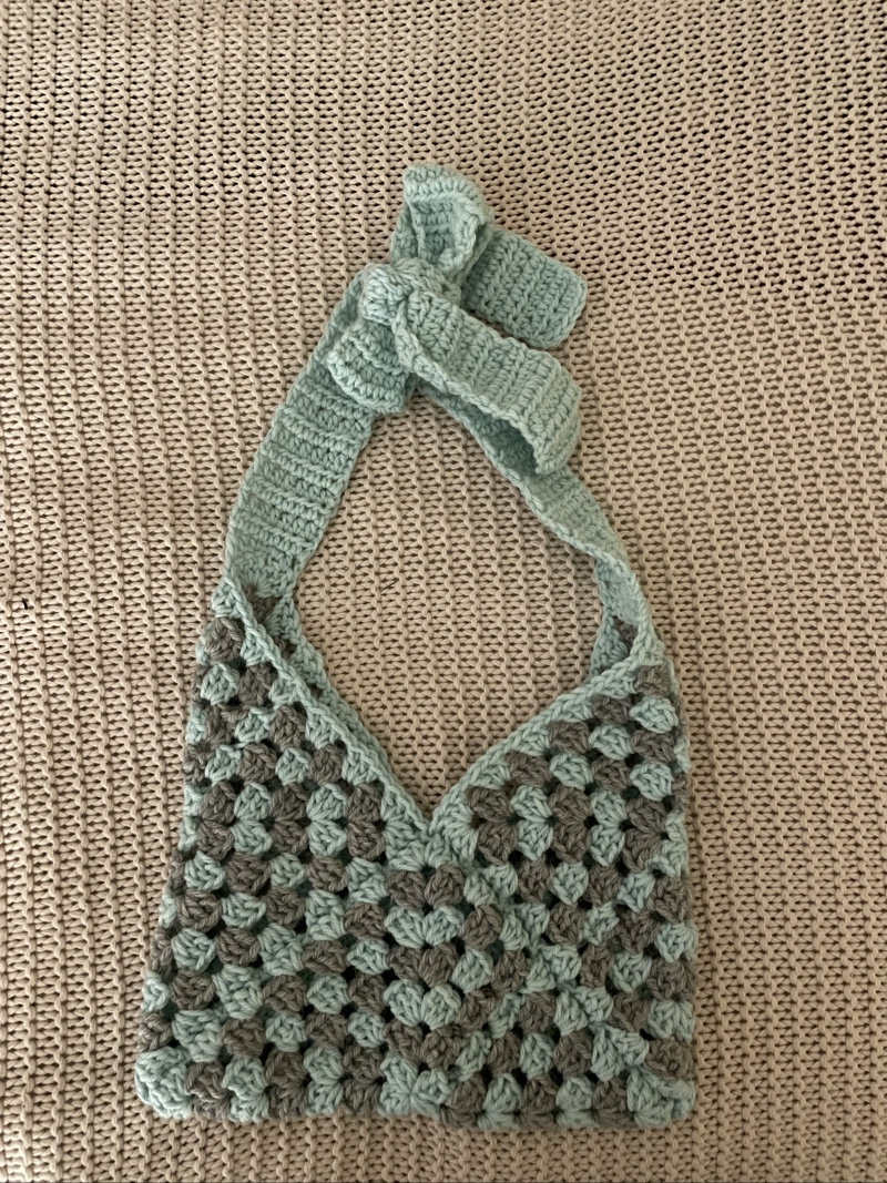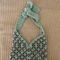 Käsintehty virkattu olkalaukku mintunvihreä-harmaa.