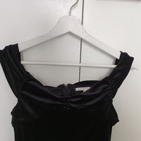 Mint&berry -merkkinen pikkumusta. Samettinen kangas. Vähän käytetty. Itselläni yltää puoleen reiteen, olen 169cm.