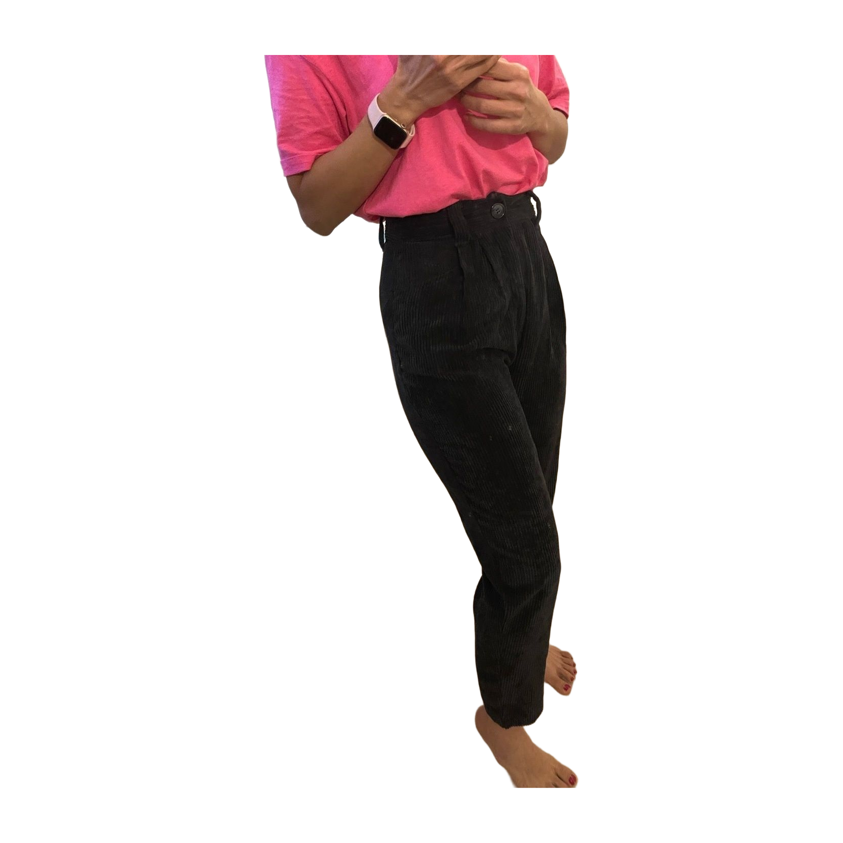 Corduroy pants size 34. Dark grey almsot black in colour. High-waisted. Only tried on! 😊