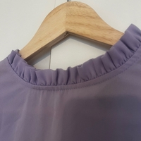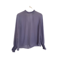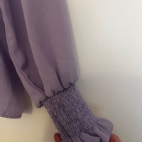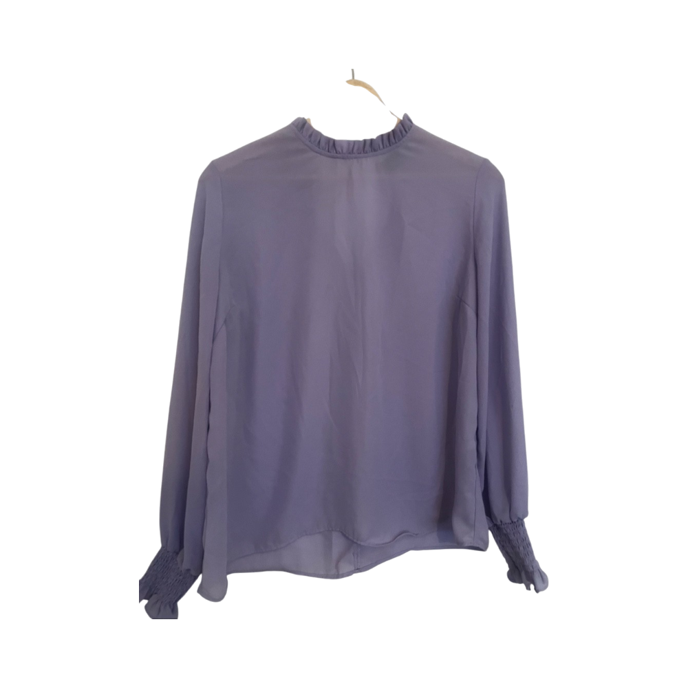 Kevyt, pitkähihainen sifonkipusero, frillakaulus ja smokkirannekkeet.