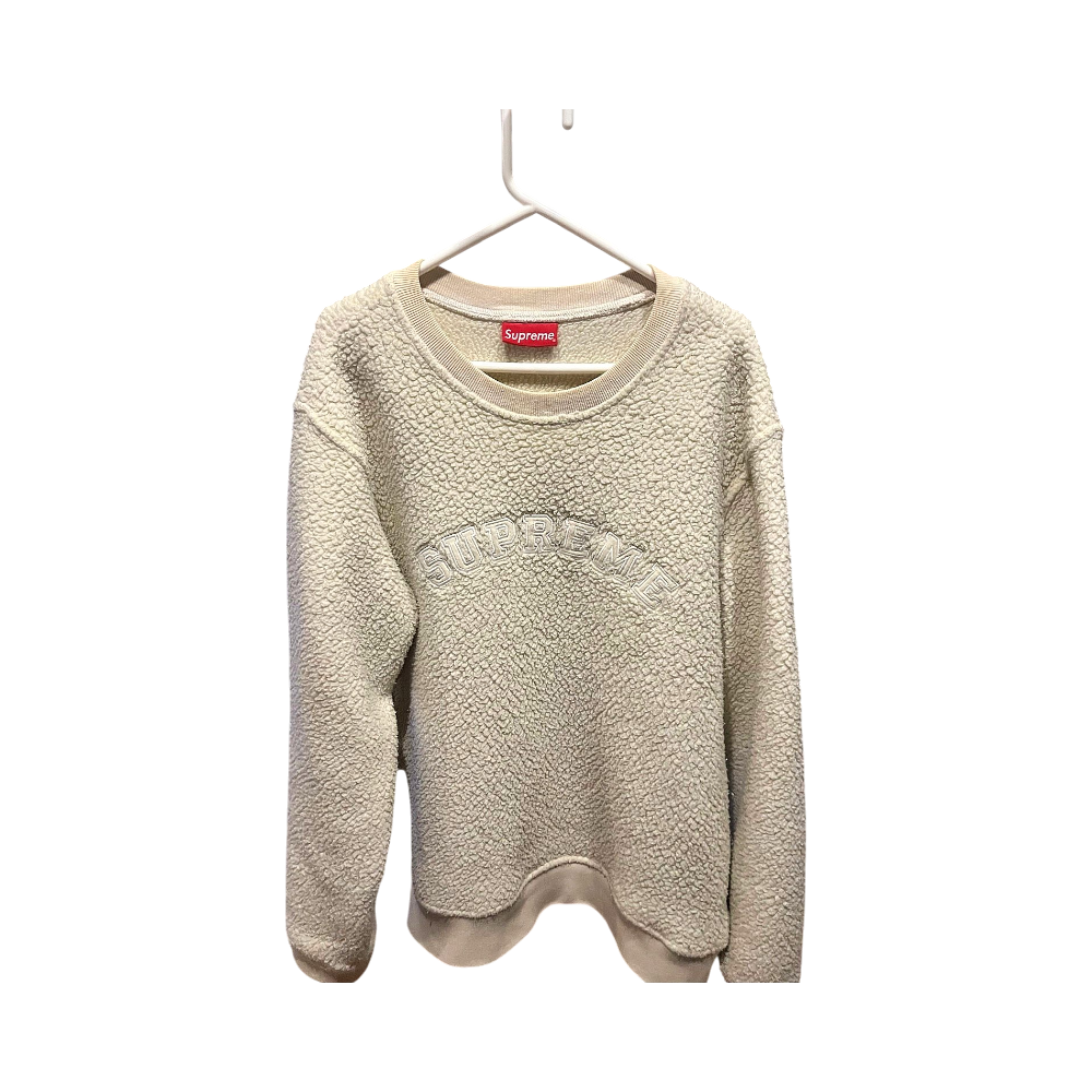 SUPREME polartec crewneck deep lined fleece cream pile F/W 17 Natural sz Large