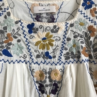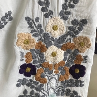 Kaunis, kukkakuvioin kirjailtu boho-henkinen pusero. Unelmankevyt ja laskeutuva. Ostettu uutena, vain kerran juhlissa käytetty. Materiaali 65% viskoosia, 35% puuvillaa. Mitat: