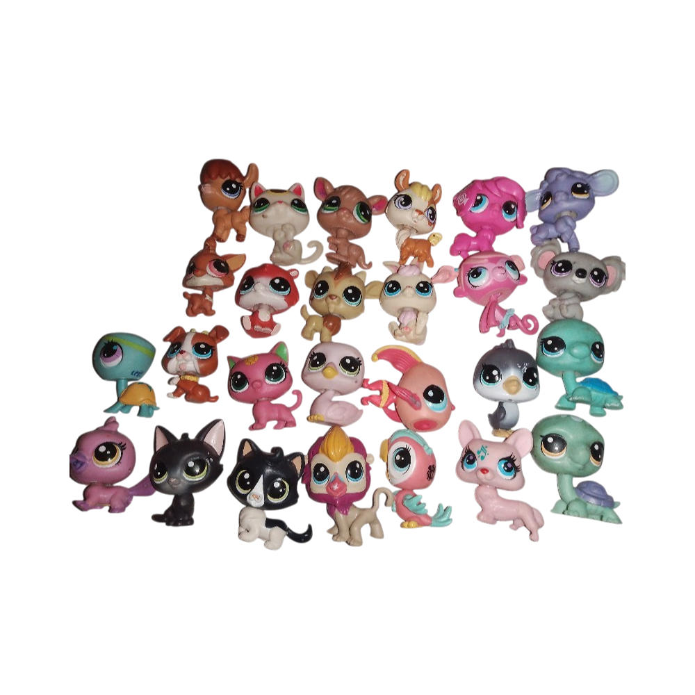 Lot of small Littlest Pet Shop collectible animal figures, mixed set.