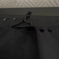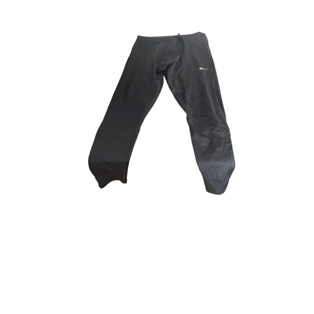 Mustat pitkät treenitrikoot, pienet kulumat ja reikä vyötärössä.