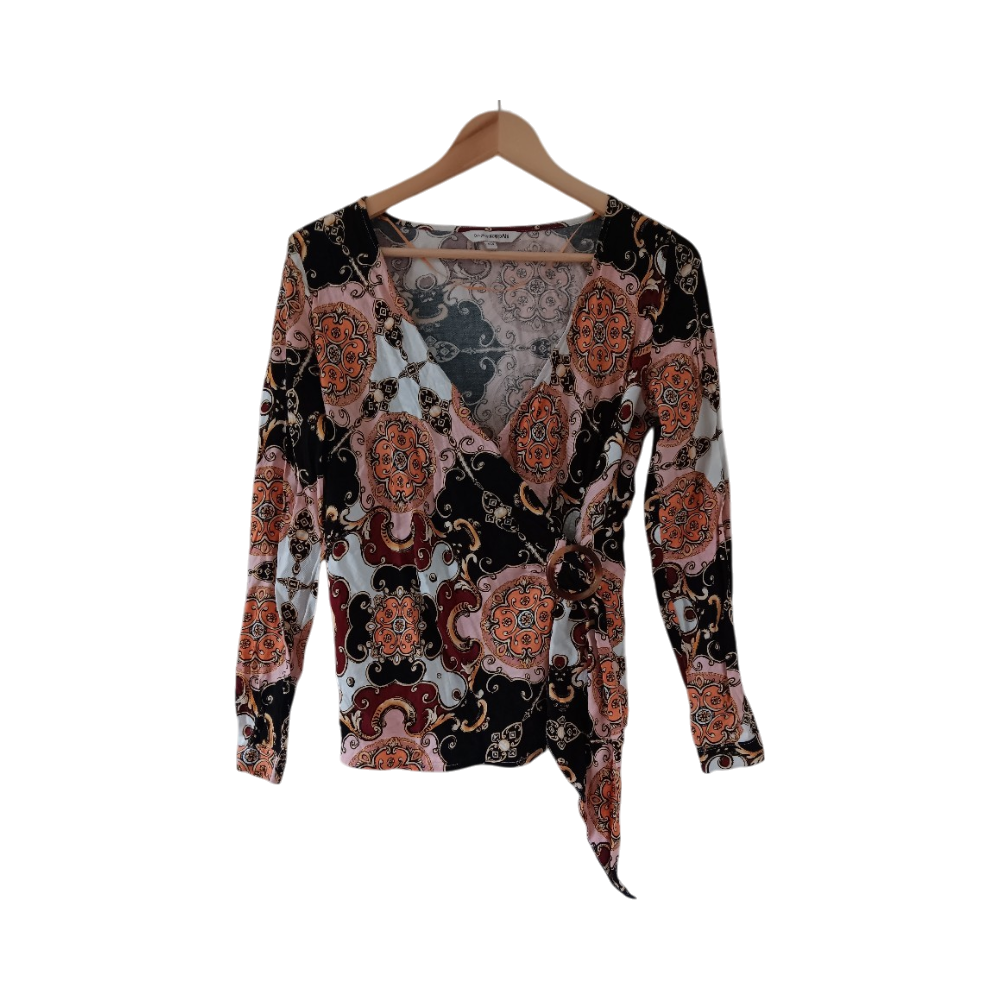 Pitkähihainen kietaisutoppi solkivyöllä. 100% viskoosia. Pari kertaa pidetty, loistava kunto.