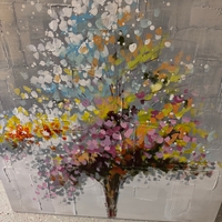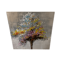 Iso monivärinen canvastaulu, abstrakti kukkapuu-aihe.