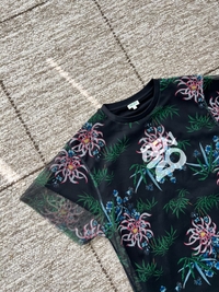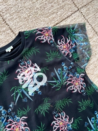 Uutta vastaava Kenzon kukkamekko, läpikuultava mesh päällikangas. Koko s, mutta sopii hyvin myös m koossa. Pituus 87cm ja kai kai mitta noin 51cm.