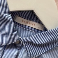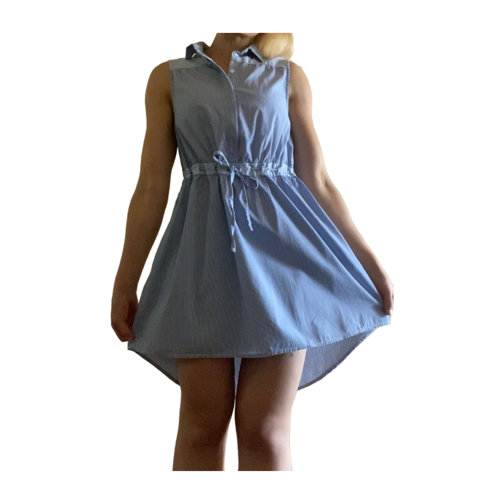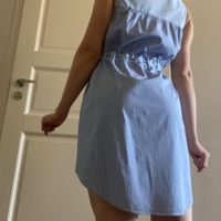 Kaunis paitamekko, edessä napit ja nyöri vyötäröllä. Takana hieman pidempi hame osa, edessä hame jää polvien yläpuolelle.