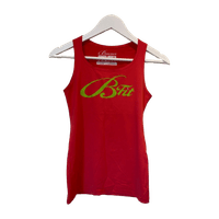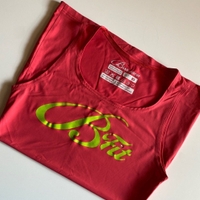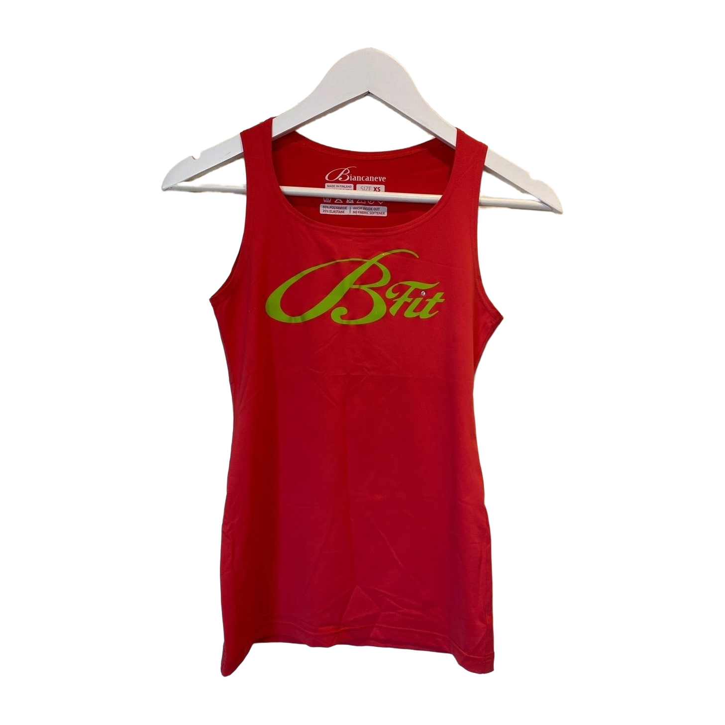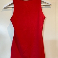 Kaunis korallin-punainen vartaloa myötäilevä urheilutoppi. Laadukas Biancaneven Suomessa tehty.