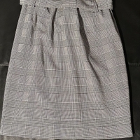 Siistissä kunnossa oleva hame, irrotettava kankainen vyö ja lisäksi hameessa on vetoketju sivussa. Menee hyvin XS-S koolle. Hameen helma jää polven yläpuolelle.