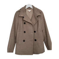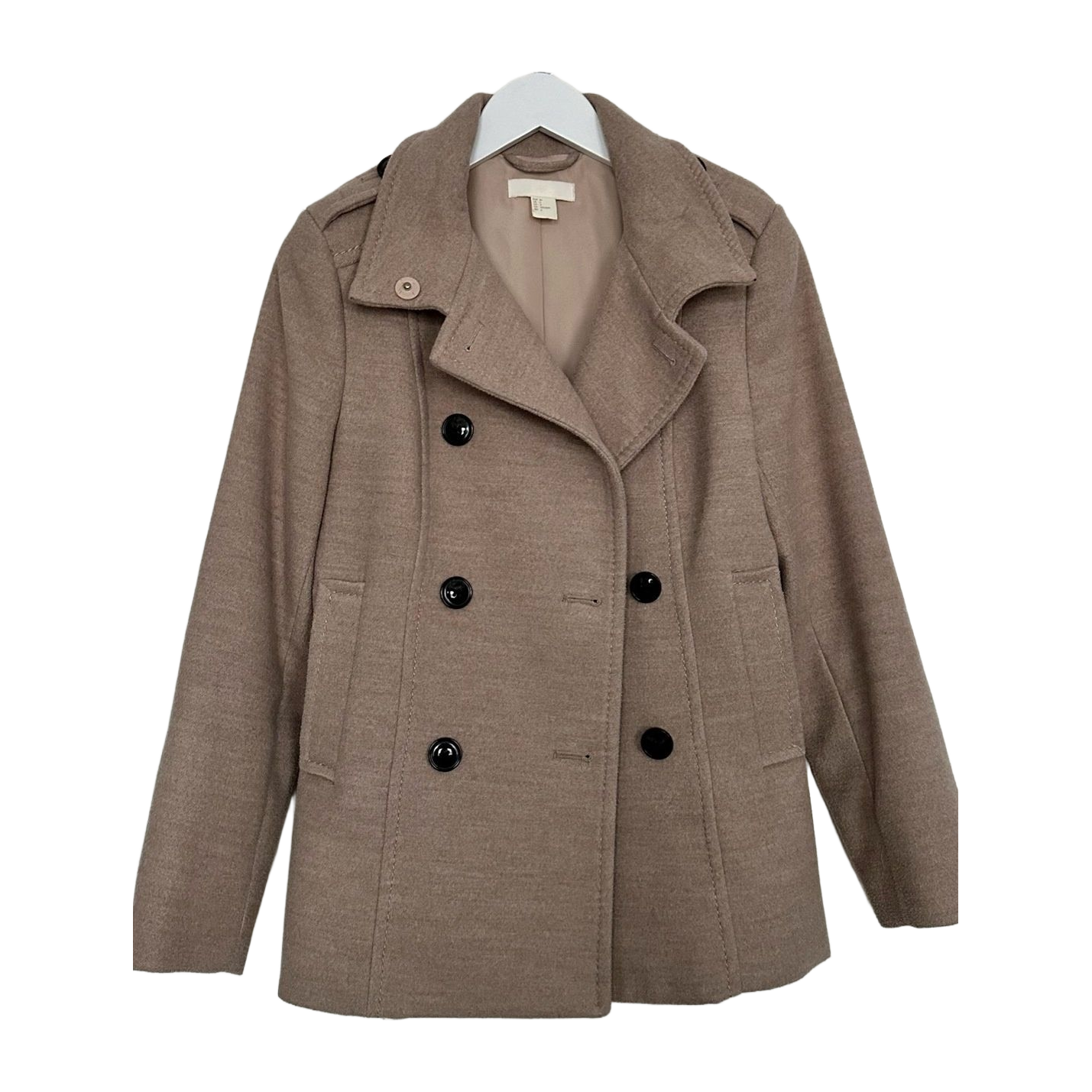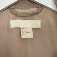 Koko 36/S. Todella siistissä kunnossa, vain muutaman kerran käytetty. Yltää reisien kohdalle, pepun alle. ”Villakangastakki” ei sisällä oikeaa villaa. Väri on kaunis beige, vaaleampi luonnossa kuin kuvassa.