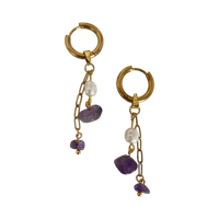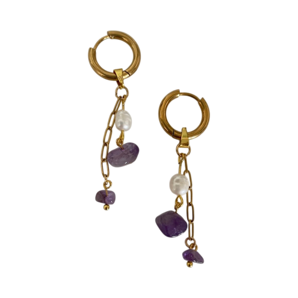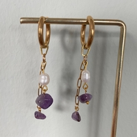 Käsintehdyt korvakorut ametistisiruilla ja makeanveden helmillä💜