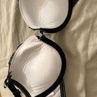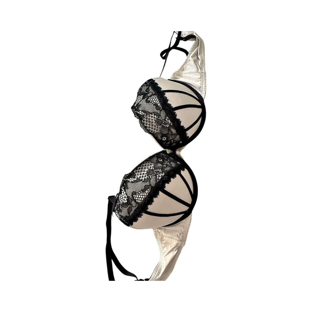 Valkoinen ja musta pitsinen rintaliiv