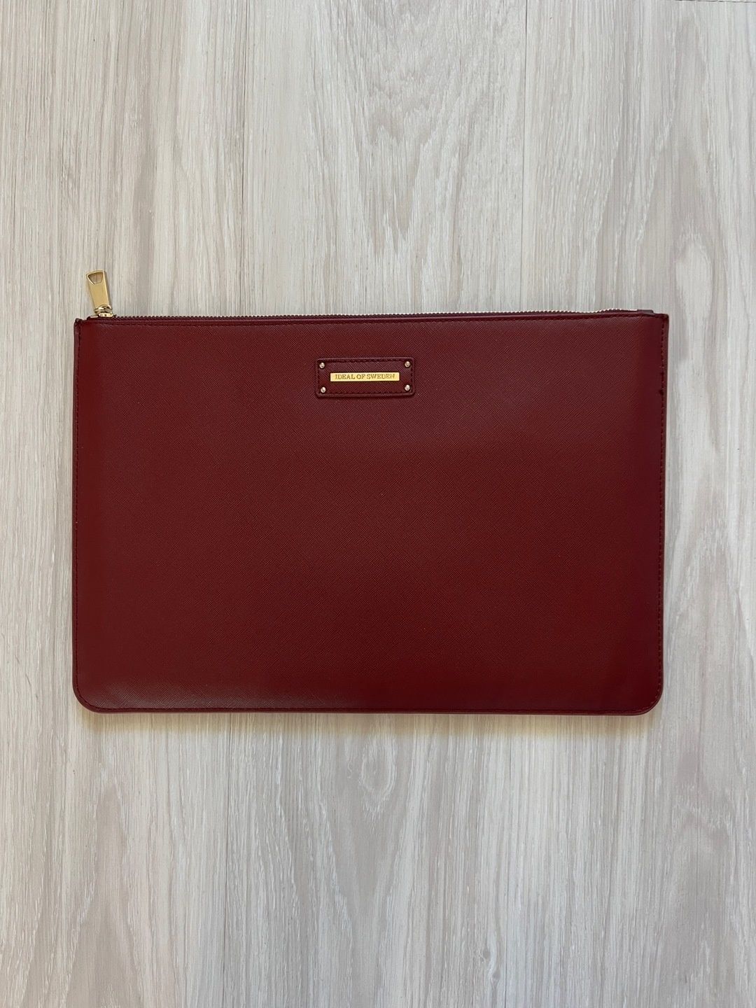 Viininpunainen tietokonelaukku, 38cm x 26cm. Sopii 13-tuumaiselle koneelle. Muuten moitteettomassa kunnossa, mutta pieni kuluma oikeassa yläreunassa (näkyy viimeisessä kuvassa).