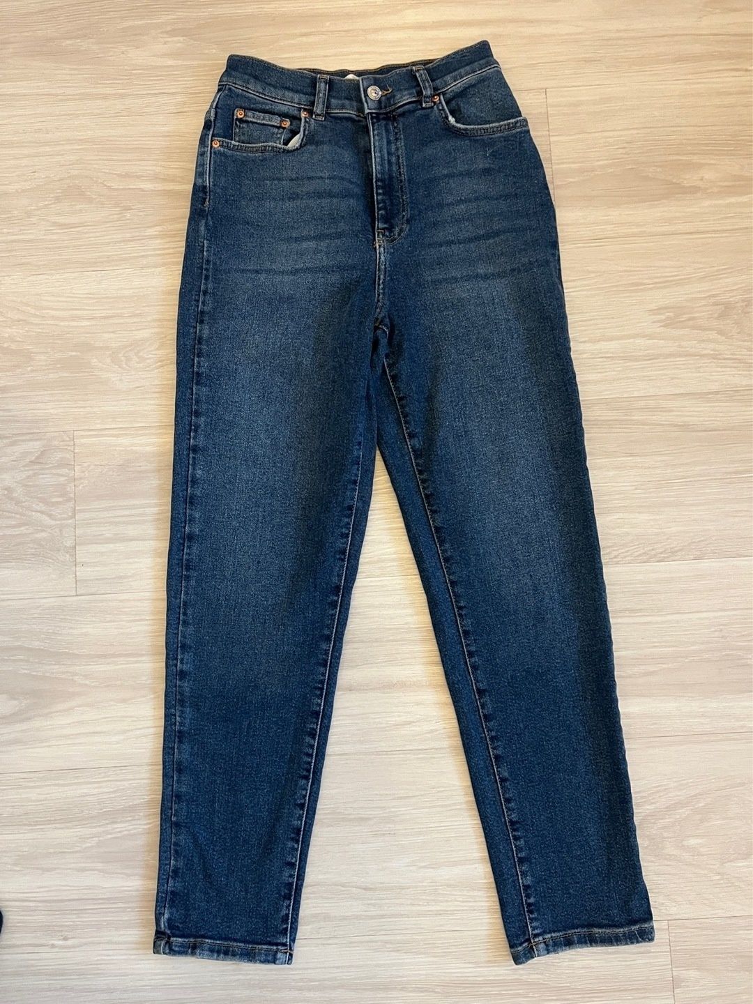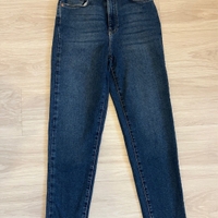 Tummansiniset farkus joustavaa materiaalia. Suorat puntit, taskut edessä ja takana. Koko 38.