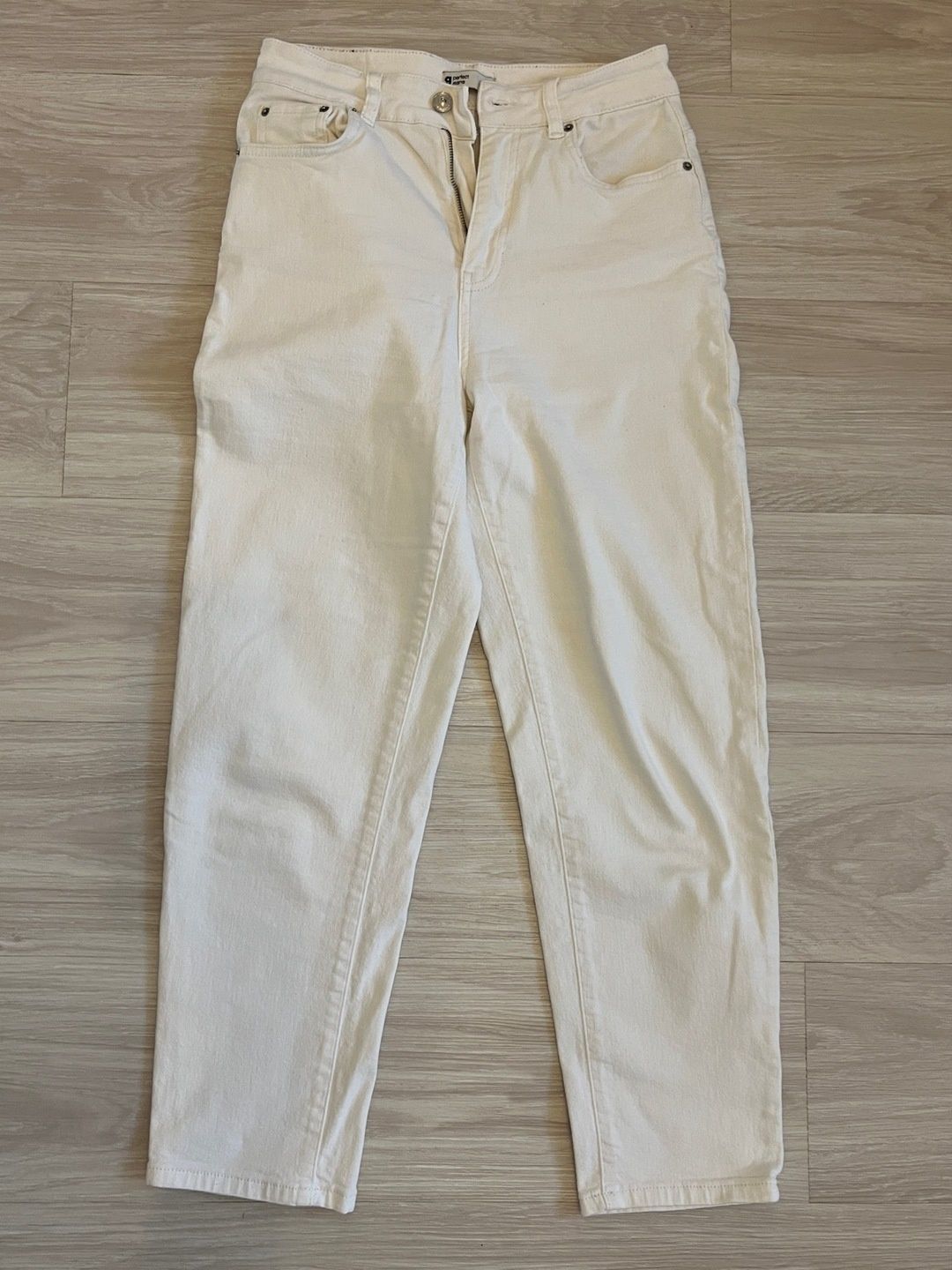 Valkoiset farkut. Suorat puntit, joustavaa kangasta. Koko 38.