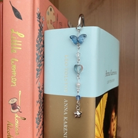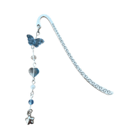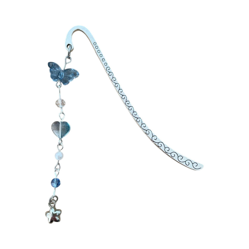 Käsintehty metallinen kirjanmerkki sinisillä helmillä ja perhoskoristeella.💙