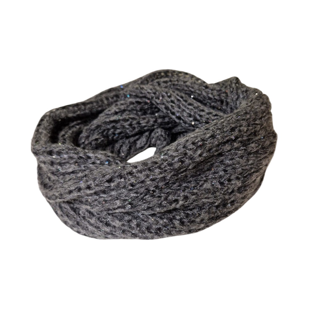 Pehmeä harmaa kuultokimalteinen lenkkihuivi. Käyttämätön. Laput uupuu. Made in Italy- Complit. Laadukas. Lenkin koko mitta n 120-130 cm. Villa-mohair-akryyli-nylon.