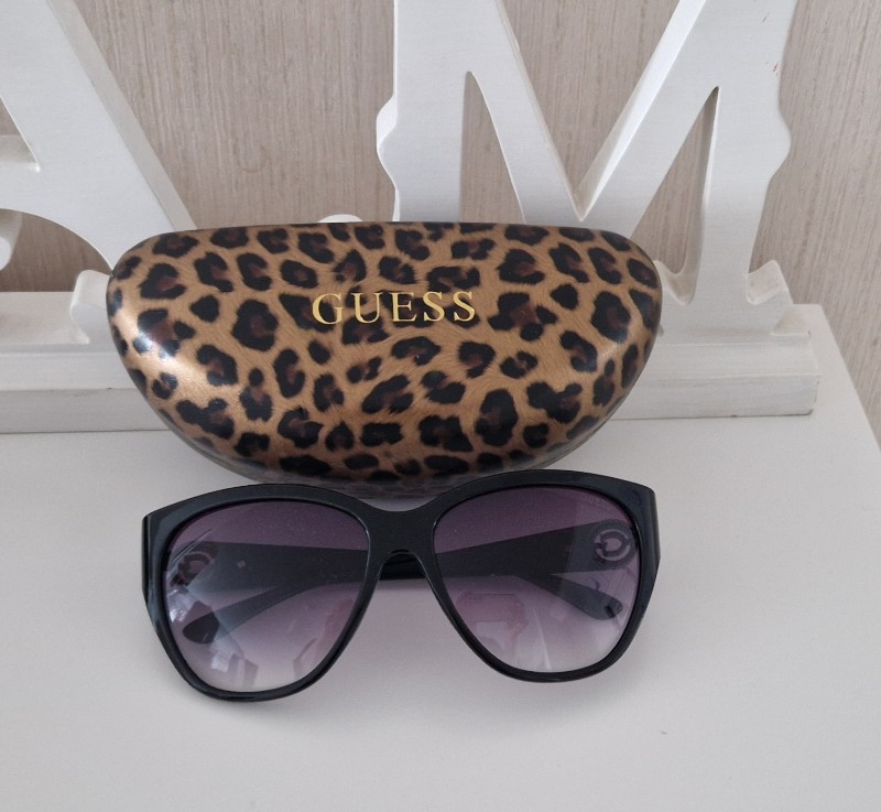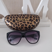 Guess aurinkolasit. Toisen sangan sisäpuolella kuvan mukaista jälkeä. Sankojen sisäpuolen merkinnät kuluneet enkä saa selville mallitietoja. Kohtuusiisti kunto. Mukaan kotelo ja toisen merkin pyyhinliina.
