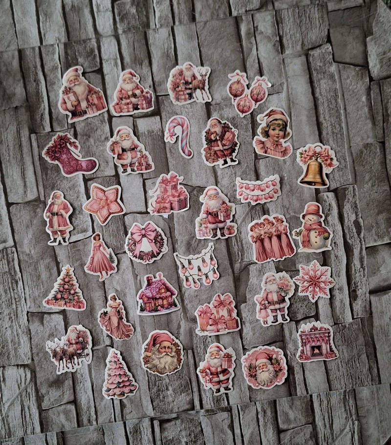 Ihanan pinkkejä tarroja jouluksi, uusia ja isoja. Pakkauksessa 32kpl, kaikki näkyy kuvassa 🫶