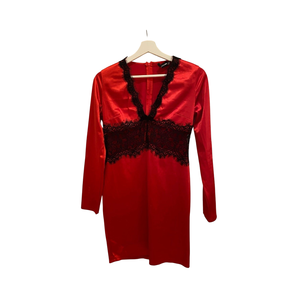 ❤️ Punainen mekko, jossa mustat pitsiset, läpikuultavat yksityiskohdat