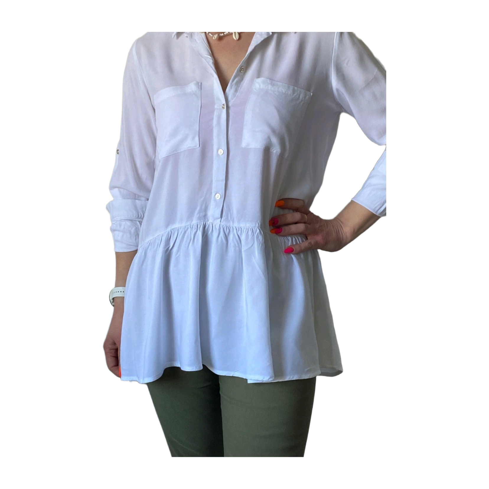 Valkoinen rento paita, 3/4 hihoilla. #white#summerfashion. Pienet kullansävyiset napit