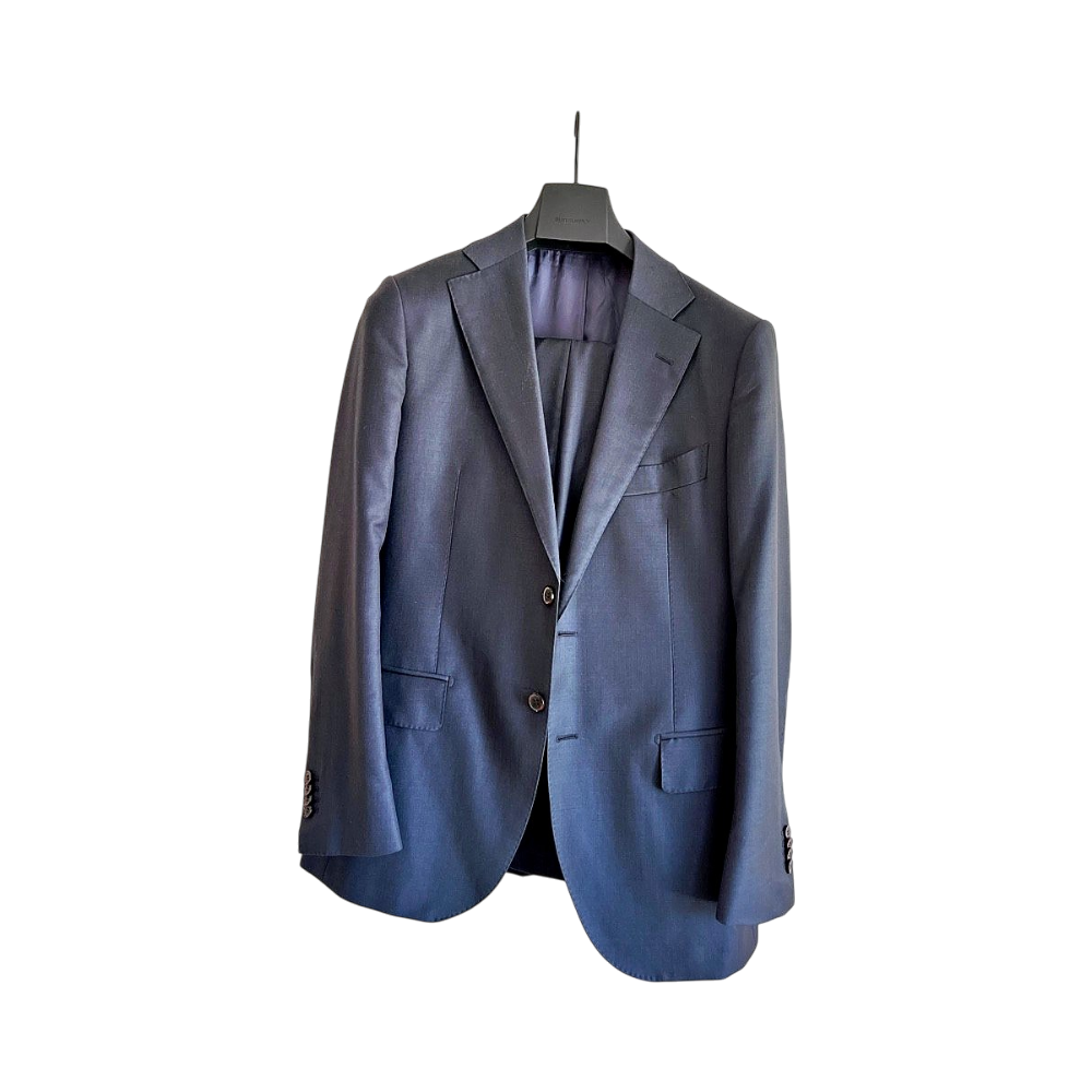 Miesten tumman sinenen/navy puku, takki ja housut. N. 6 vuotta vanha kokonaisuus, mutta hyvässä kunnossa. Koko 50.