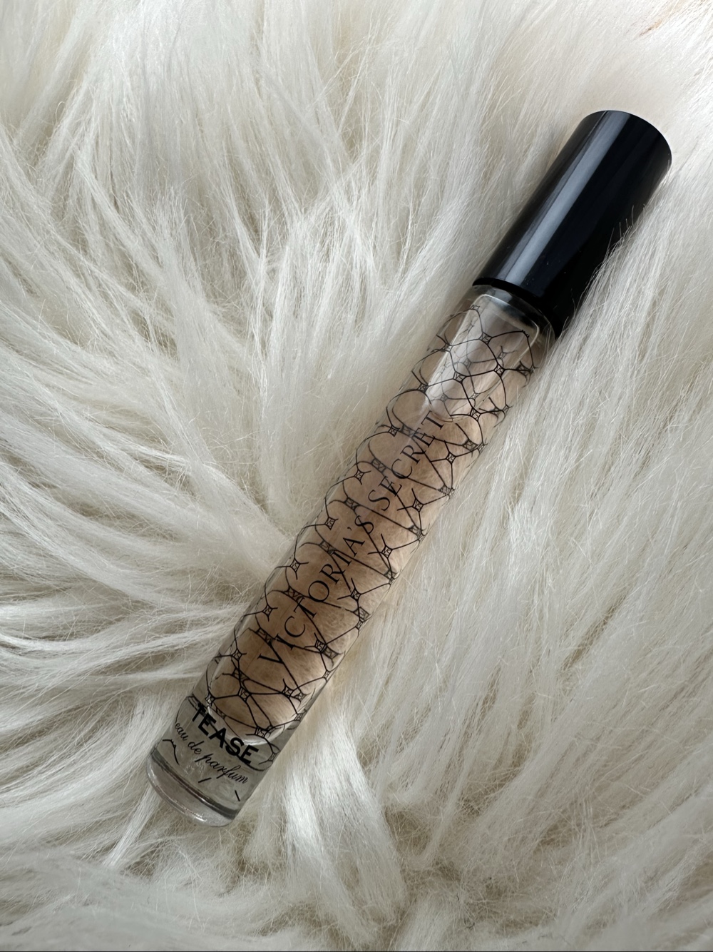 Victoria's Secret Tease eau de parfum in a rollerball glass bottle.