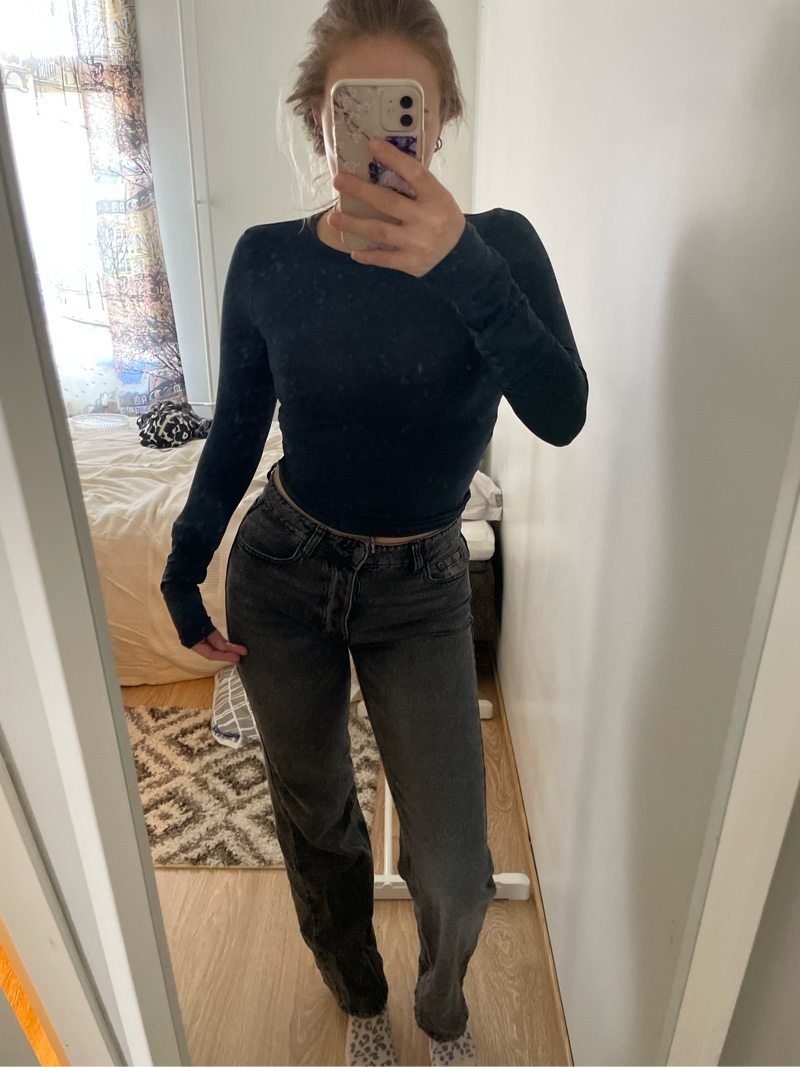 Pitkähihainen t-paita, koko XS, tummansininen väri.