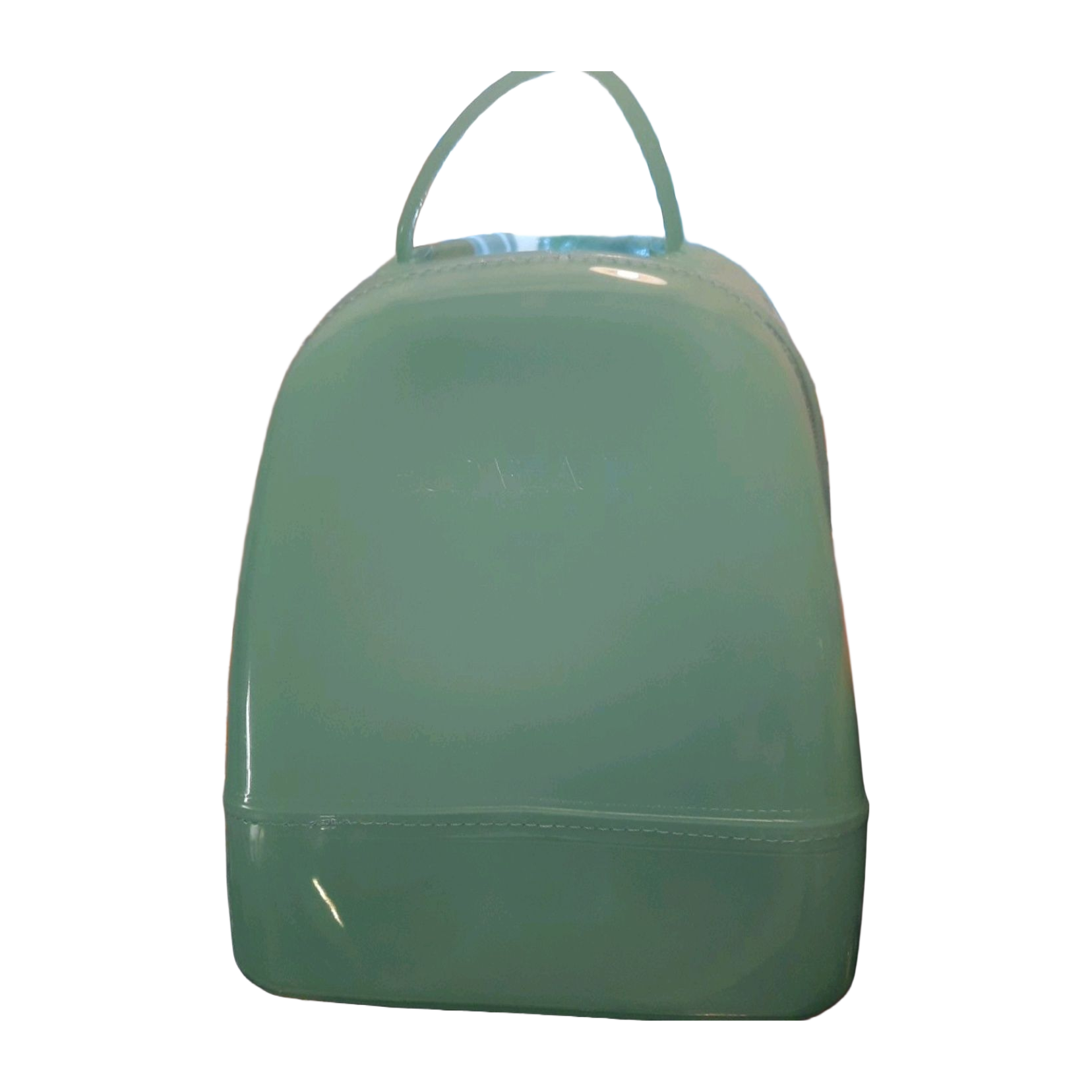 Huda Beautyn mintunvihreä jelly bag -pikkureppu. Säädettävät ja irrotettavat hihnat. Todella jämäkkää materiaalia, minkä ansiosta pitää täysin muotonsa.
