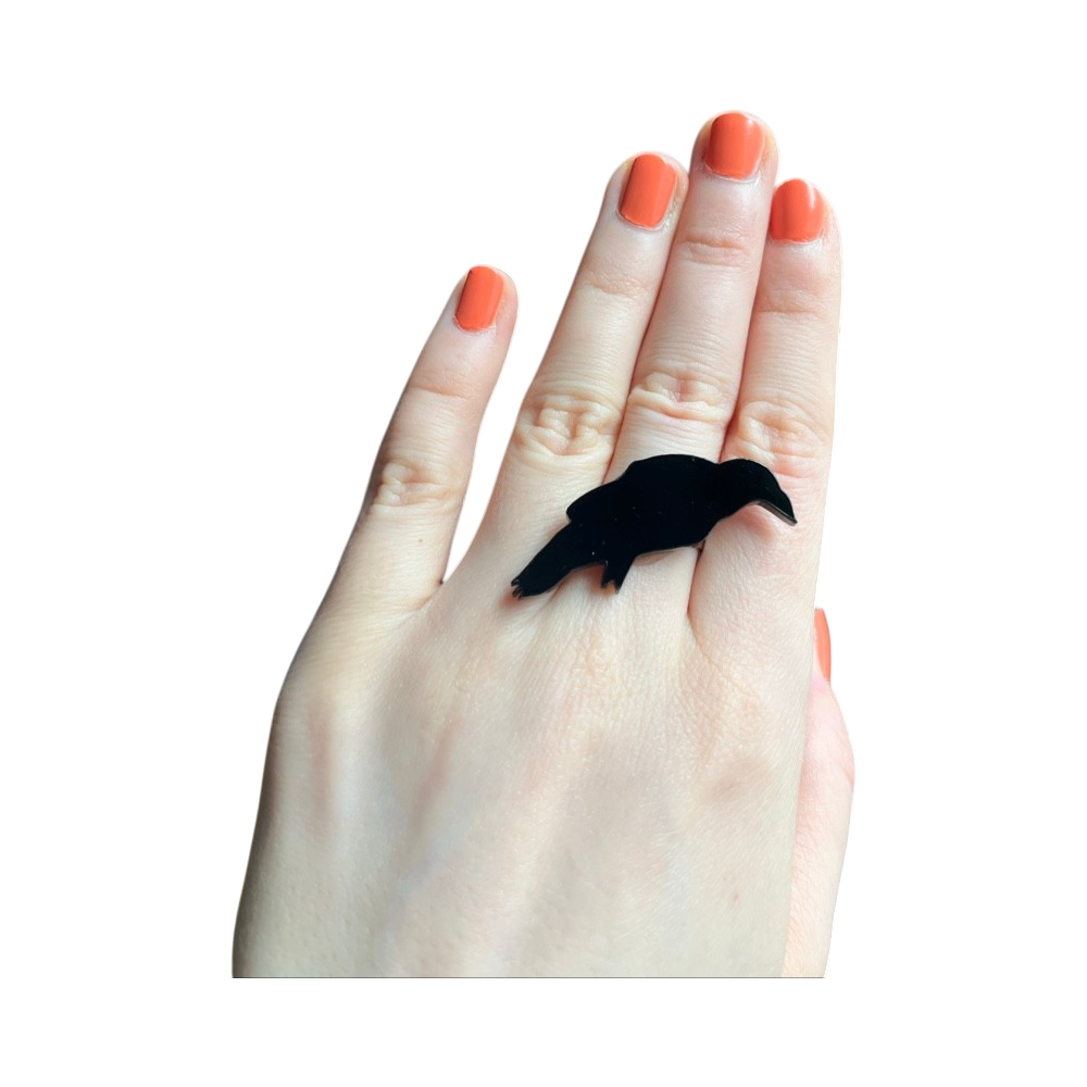 Musta akryylinen korppisormus