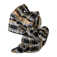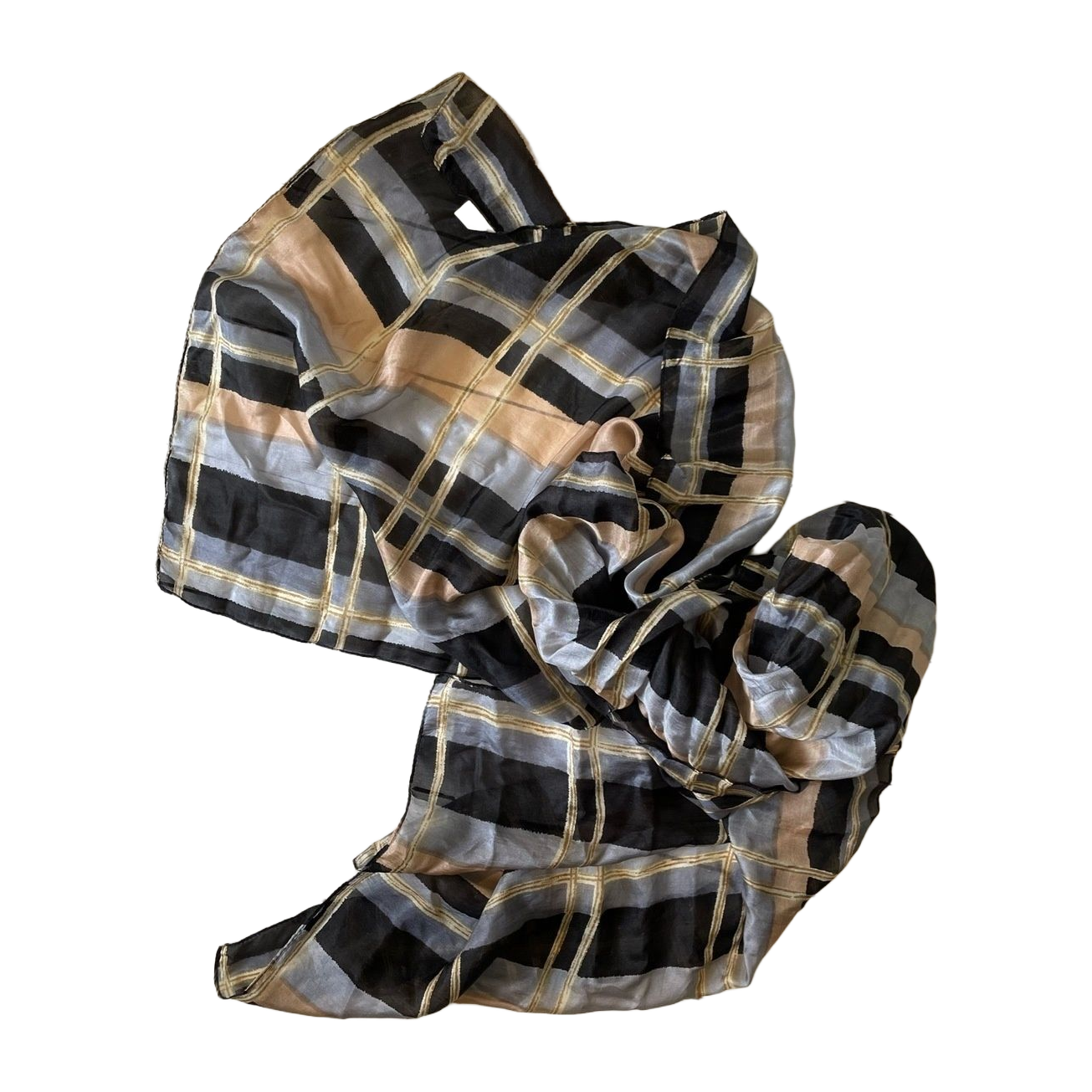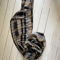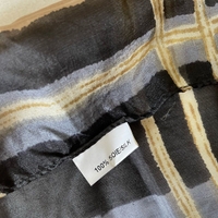 Silkkihuivi, käyttämätön. Pituus n. 190 cm, leveys n. 50 cm. Ohut ja herkkä materiaali, joten pieniä langanvetoja saattaa löytyä, mutta näitä ei kuitenkaan omaan silmääni osunut.