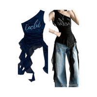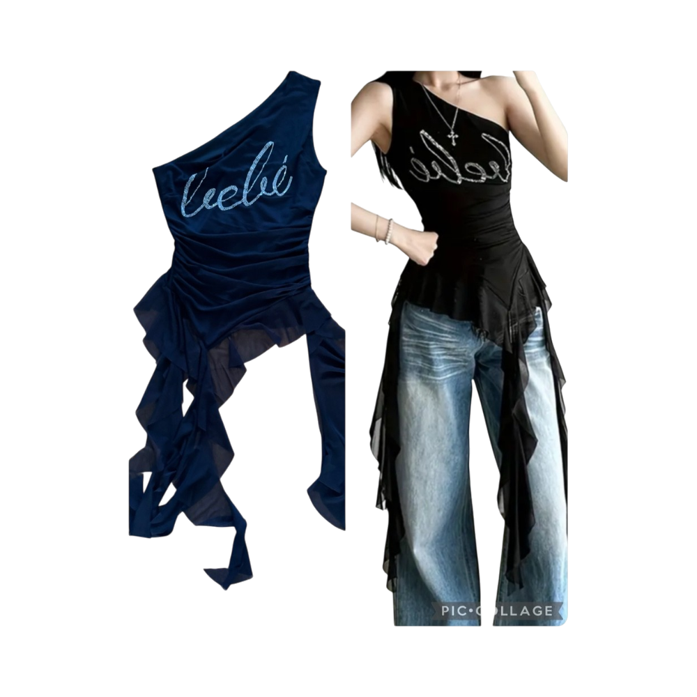 Yksiolkaiminen huivihapsu toppi, koristekirjailtu edessä. Korea merkkiä