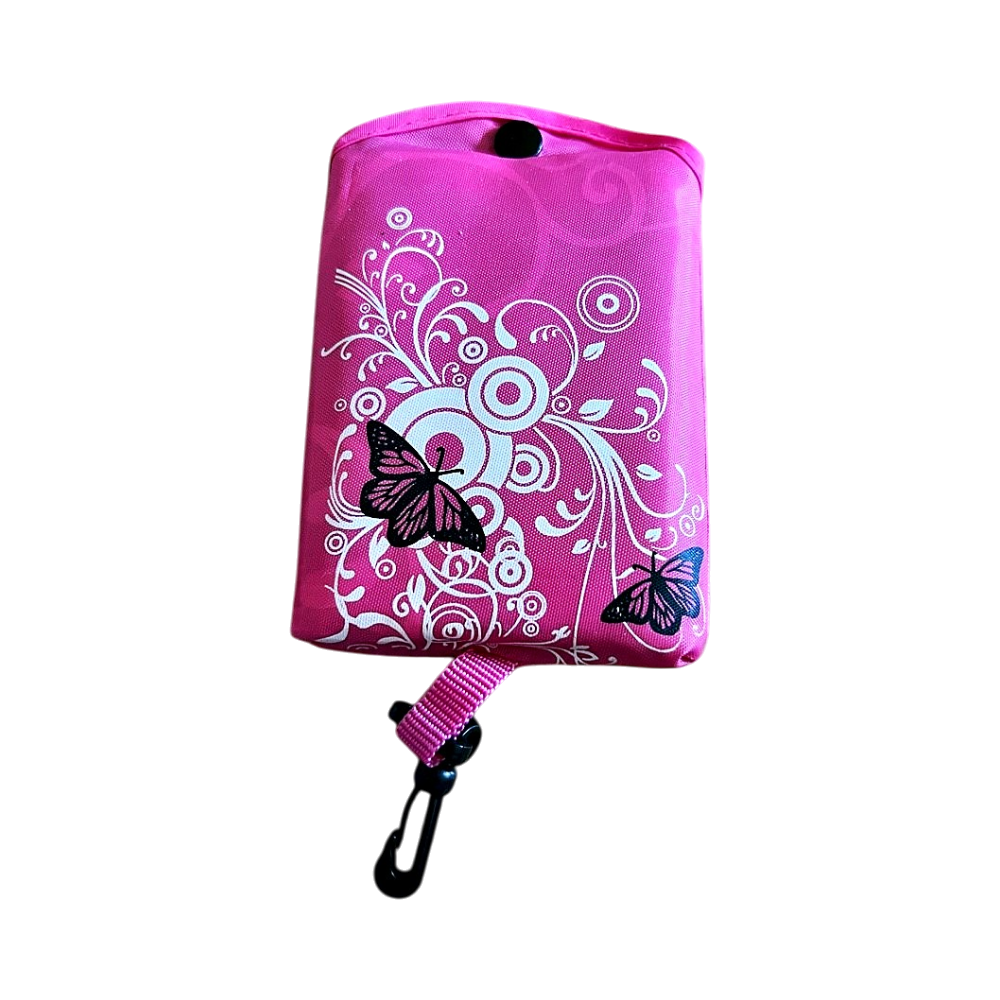 Kevyt ja kätevä taitettava kangaskassi, jossa perhonen-kuvio