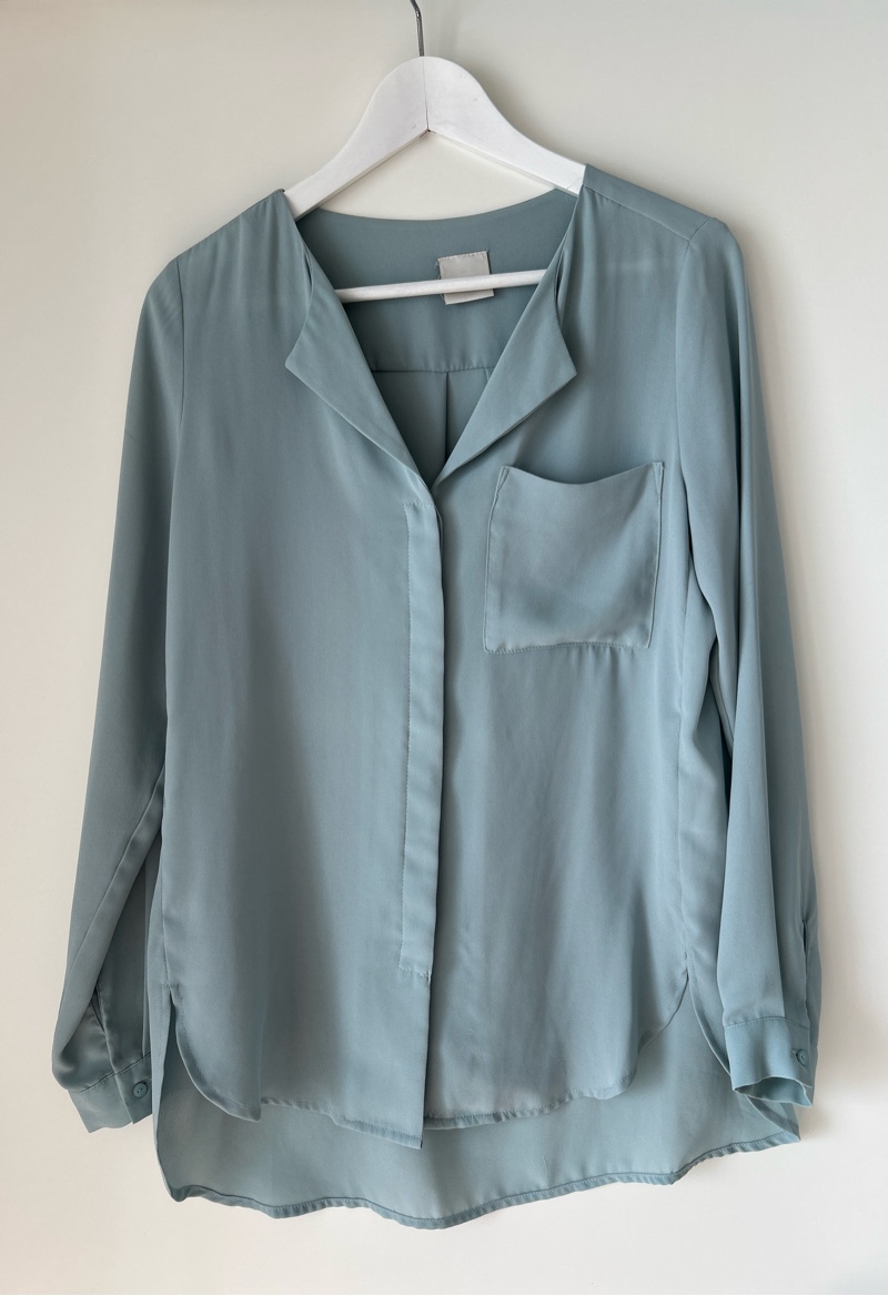 Naisten vaaleansininen/ vaalean turkoosi pitkähiha paita, rintataskulla. Ollut vähällä käytöllä.