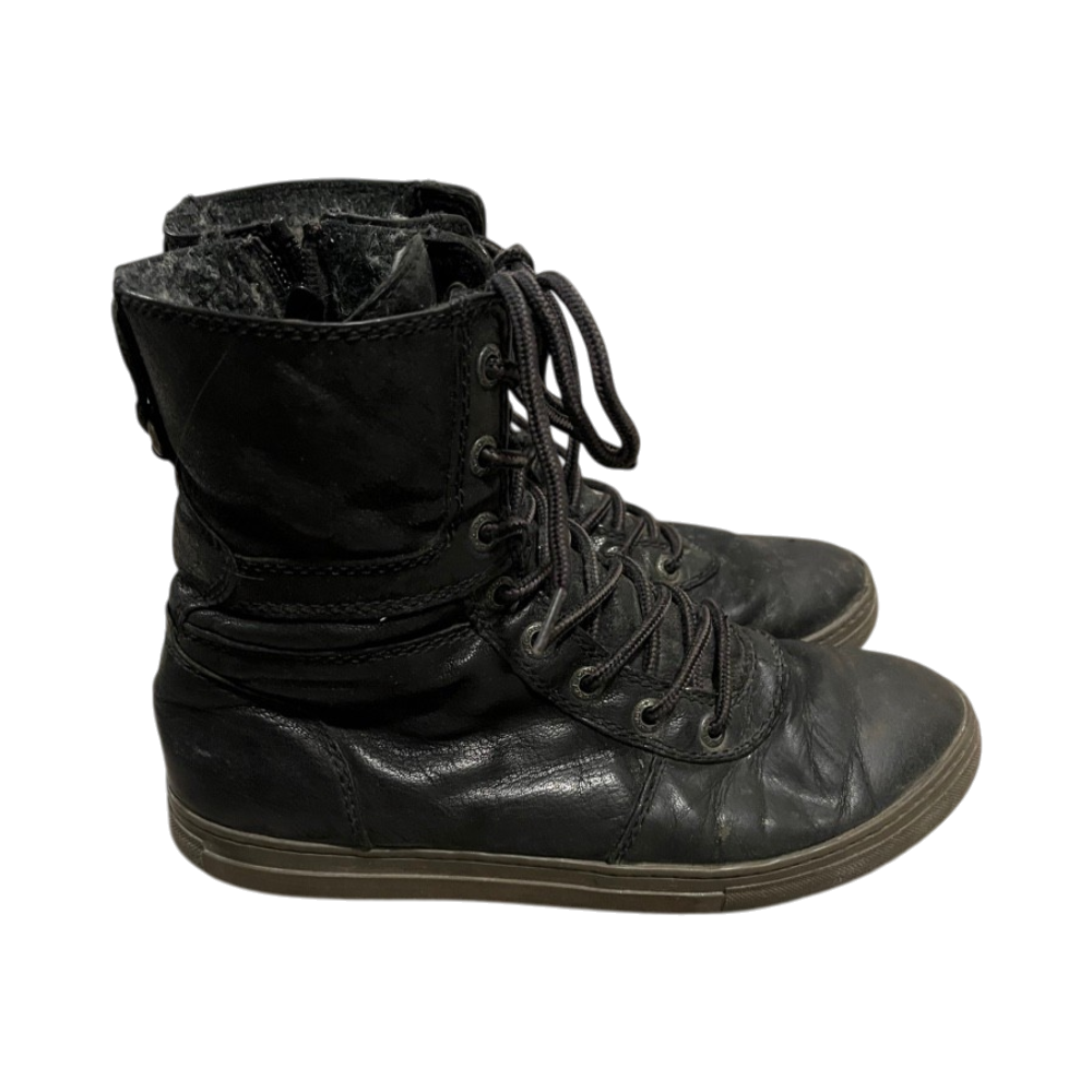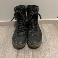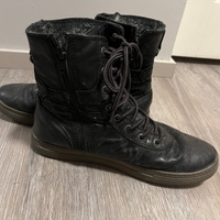 Nahkaiset, vuoritut ja nyörilliset naisten talvikengät.