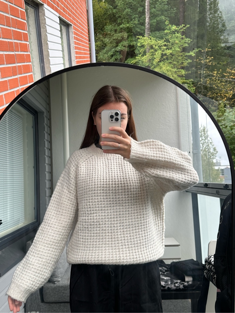 Cozy cream waffle-knit pullover, relaxed fit. just not my style anymore