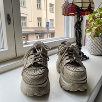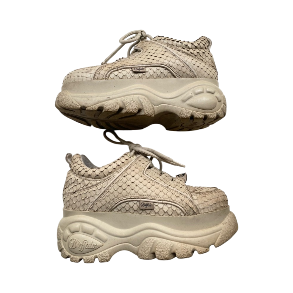 Platform Buffalo sneakers in dark beige (snake pattern, real leather). Price as new 200€.