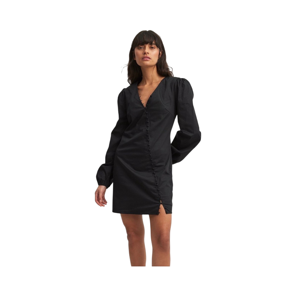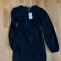 Asymmetrinen pitkähihaisen minimekko, napitettu etuosasta.