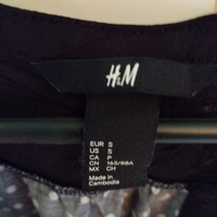 Naisten musta pusero valkoisilla pilkuilla, napitettu edestä. 3/4 hihat