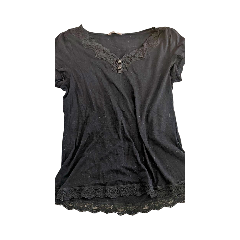 Mukava musta t-paita pitsisomisteilla.
