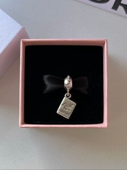 Silver Pandora charm shaped like a passport with an airplane design. Presented in a branded gift box. Condition is seen in photos. Will add a box and a bag.