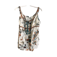 Kevyt ja ilmava toppi 100% puuvillaa. Kiristysnyöreillä mahdollista säätää kokoa sekä kaula-aukossa että rintojen kohdalla. Uutena ostettu, käytetty vain pari kertaa. Mitat: