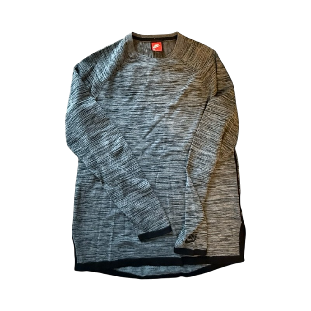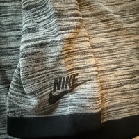 Nike harmaa melange techfleece, mustilla resoreilla ja logolla.