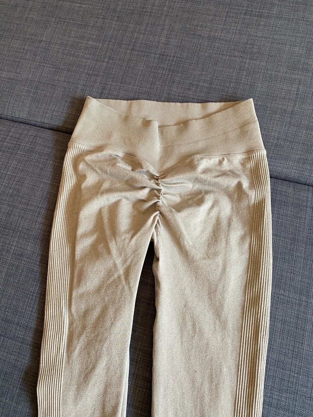 Thalia Contour Legging ’almond bare’ (vaalea beige). Koko S/M. Jonkin verran nukkaa takamuksessa, mutta ei näy selkeästi ja saanee irti. Todella mukavat, eivät valu eivätkä purista. Ovh 67,40 €.