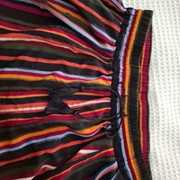 Värikkäät raidalliset housut, joustava vyötärö, molemmilla sivuilla taskut. Lahkeen sisäsivupituus n. 64 cm.