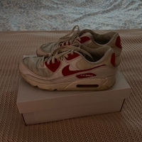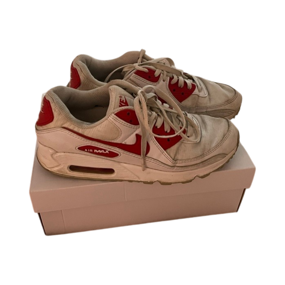 Käytetyt Nike Air Max -tennarit, hyvä peruskunto. Taikasienellä tai pesulla tulee varmasti täysin valkoiset😊.